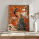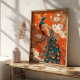 Pavão Opulente em um Quadro Floral Este poster captura a essência de Art Nouveau com um pavão majestoso adorado em detalhes intrincados. Colocada contra um pano de fundo floral cor de laranja vibrante, esta peça é uma mistura espantosa de natureza e elegância.