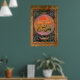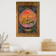 A brighter version of this unique poster is a print of an original painting by digital artist, Leslie Sigal Javorek, inspired by the colors, textures, graceful curves of 19th Century Theater Posters by Art Nouveau Master, Alphonse Mucha. The focal point is a trio of intertwined Poppies set inside of an elaborately cut metal (aged copper) faux 3d frame that reveals blue & green glazed enamel behind it & a wide outer border of tinted shale. 4 paper types & multiple sizes. Also see gallery-wrapped canvas.