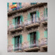Janelas decorativas e varanda no estilo Modernista Catalão/Art Nouveau. No canto superior esquerdo, uma bandeira espanhola. (Foto, Espanha de Barcelona, 2019)