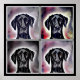 Adicione um toque artístico ao seu quarto, corredor ou sala de estar com este majestoso design em aquarela de um Grande Danés Preto com fundos coloridos abstratos alternados. Isto também faria um ótimo presente para um amigo ou familiar que ama cães ou especificamente Grandes Daneses.
