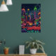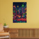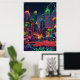 Experimente o pulso selvagem da vida noturna da cidade com esse trabalho de arte urbano surreal, onde cores neonatais e arranha-céus deambulantes colidem em energia caótica. Perfeito para amantes da arte neon cityscape, impressões urbanos de arte de rua e designs dinâmicos de cidades gráficas.