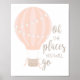 Arte de Balão de Ar Quente Cor-de-Rosa, Impressão Oh Os Lugares Que Você Irá, Citação para a Sala do Bebé
