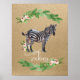 Pôster Arte de berçário da selva da safari de zebra