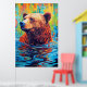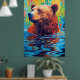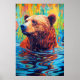 Poster Arte de cabana pintura abstrata de urso colorido