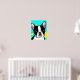 Ilustração do retrato do Boston Terrier em um fundo aqua com círculos amarelos para alegrar as paredes de qualquer sala de um amante de cães, ou sala de brinquedos das crianças