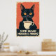 Esta trabalho de arte divertida e humorística mostra um gato negro segurando uma xícara de café a vapor com a frase ousada "Café Porque o Assassinato Está Errado." A design inspirada na vintage mostra os olhos laranja impressionantes do gato e uma expressão viscosa, fazer-o como o impressão perfeito para amantes de gatos e entusiastas de café. Quer você esteja decorando sua cozinha, escritório ou canto de café, este poster esquisito vai adicionar um traço de humor ao seu espaço. Ideal para qualquer um que ama gatos, café e um pouco de humor negro.