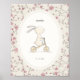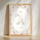 Esta ilustração de coelhinho fofo em uma bicicleta de madeira é uma obra de arte personalizada para a sala de bebês ou quarto de crianças. Cercada por detalhes florais suaves e tons pastéis suaves. A impressão pode ser personalizada com o nome do seu bebê ou criança, tornando-a um item de recordação verdadeiramente único. Perfeito como presente de baby shower, presente de recém-nascido, surpresa de aniversário ou decoração especial para a sala de bebês ou quarto de crianças. Seu estilo atemporal e paleta de cores suaves se encaixam lindamente em interiores infantis clássicos, vintage ou modernos.