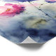Poster Arte de flores de aquarela roxa e rosa