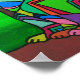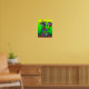 Decorem suas paredes em estilo com este poster de arte único e colorido tirado de uma pintura acrílica. Nesse trabalho de arte abstrato, branco, esse gato colorido do arco-íris, composto por formas geométricas multicoloridas em todas as cores do arco-íris, fica sobre uma superfície marrom sobre um fundo verde-ombre e amarelo. Ela tem um olho azul e um olho verde, assim como uma coleira vermelha com um ouro.