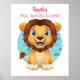 Poster Arte de Leãozinho Fofo, Nome da Criança e Mensagem