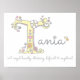 Lindo pôster com monograma T em arte nome perfeito para o quarto ou sala de brincar de meninas em tons de cinza, branco, amarelo, rosa e roxo. Personalize com o nome da sua filha começando com T, e o significado do nome para um presente exclusivo e verdadeiramente personalizado para o quarto ou berçário da sua filha, este exemplo é para o nome T Uma beleza real, impressionante, desafiadora e mística. Impressão de pôster fofo ideal para o quarto de meninas ou para presentear um novo bebê, presente de batizado ou chá de bebê. © Desenho exclusivo de monograma da letra T com corações e flores e design de arte gráfica por Sarah Trett. www.sarahtrett.com para www.mylittleeden.com