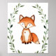 Esta arte de parede de cor aquosa de raposa é perfeita para decorar o berçário de bebês ou o quarto de crianças. Esta arte de parede faz parte de um conjunto de 3 matas verdes que murcham. Localizar itens correspondentes no repositório. (c) O feliz Cat Studio.