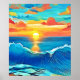 Trabalho de arte impressionante com um pôr do sol vibrante sobre uma onda estilizada no oceano. Explore as cores ricas e o movimento dinâmico nesta pintura captivadora de paisagem (Este Design feito com IA). Faça a ordem hoje e encare a alegria de Comprar!