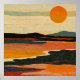 Obra de arte que retrata uma paisagem abstrata em tons quentes com um sol poente, criando um design sereno e minimalista. A composição mistura textura com simplicidade, evocando tranquilidade e expressão artística.