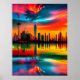 Arte colorida de paisagem urbana por pôr do sol é a maneira perfeita de adicionar um toque vibrante e vivo à sua decoração de parede. Esta arte gerada por IA é excelente de presentes e tem certeza de fazer uma declaração em qualquer sala.