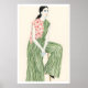 Arte de Parede da Moda Mulher Sentada Calma - Listras Verdes e Floral Rosa 1