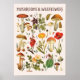 Poster Arte de Parede de Carta de Cogumelos e Flores Silv