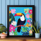 Traga a energia vibrante dos trópicos para a sua casa com este pôster de arte divertido de tucano. Um tucano colorido pousa entre flores exóticas superdimensionadas e folhas exuberantes, criando uma cena animada e alegre. Esta peça atraente é perfeita para iluminar qualquer espaço. Ideal para salas de estar, quartos ou até mesmo um espaço de escritório divertido.
