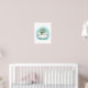 Adicione charme ao seu espaço com esta adorável arte de parede infantil de tartaruga na banheira em estilo aquarela suave em tons de azul turquesa e aqua.