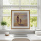 Esta pintura em estilo impressionista captura um momento terno entre mãe e filha enquanto caminham juntas ao longo de uma costa radiante.