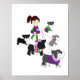 Dê um passeio com essa garota adorável caminhando com seus cães Schnauzer Miniatura. Perfeito para qualquer amante de schnauzer ou berçário temático de cachorro!