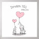 Arte de Parede Sonhe Grande para decoração de berçário lindo em cinza e rosa. Apresentando dois elefantes segurando balões em forma de coração com uma placa Sonhe Grande Pequeno em fonte decorativa