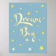 Poster Arte de parede para berçário Sonhe Grande Azul Ama