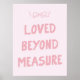 Celebre o amor incomensurável de Deus com esta arte de parede “amada além da medida” em rosa suave. Com letras divertidas e um laço delicado, este design traz calor, encorajamento e charme feminino para qualquer espaço. Perfeito para berçários, quartos ou como um presente cristão atencioso.