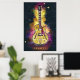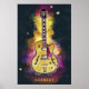 Legal Grunge Guitar Art Personalizado Poster com seu nome e nosso design de guitarra, pintado em amarelos quentes, pinks e roças em pincéis de abstrato graciosos.