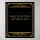 Sinal de Deco de Arte Personalizada - Festa de Gatsby Preta e Dourada ou Poster de Casamento Crie o seu próprio sinal de Deco de Arte glamouroso para casamentos, festas ou eventos especiais. Apresentando um fundo preto em negrito com borda dourada e com letras no estilo Gatsby verdadeiro do 1920, este sinal totalmente personalizável permite adicionar seu próprio texto a qualquer ocasião. Projetado por The Arty Apple, é perfeito para recepções de casamento, coquetéis, comemorações da Rua 20, ou eventos elegantes. Use-o como sinal de boas-vindas, mesa ou decoração de bar para trazer um toque de vintage de eterno para o seu dia.