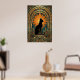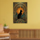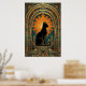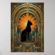 Esta impressionante obra de arte deco de gato apresenta um felino preto sentado orgulhosamente em um pedestal geométrico, enquadrado por um halo dramático de sol nascente dourado e arcos ornamentados. Tons ricos de azul-esverdeado e âmbar ecoam o design clássico dos anos 1920 para um sentimento luxuoso e vintage. Perfeito para amantes de gatos e interiores art déco, esta peça adiciona elegância instantânea a qualquer sala de estar, escritório ou corredor.