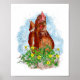 Um frango sentado no trevo e flores desenhado à mão. Bonito presente para sua mãe de frango favorita.