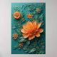 Uma composição vibrante apresentando flores laranja detalhadas com folhagem verde, mostrando precisão artística e elegância. O design intrincado evoca um senso de criatividade e beleza natural, perfeito para uso decorativo ou criativo.