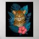 Poster Arte Floral na moda da Selva Leopard | Azul Marinh