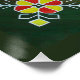 A Mãe Natureza sempre inspirou a arte folclórica letã, rica em simbolismo e bênçãos. Maravilha com a beleza, o domínio e as mensagens codificadas da arte popular tradicional da Letónia. No centro está o sinal Bem ou Ano que simboliza 12 meses do ano, atravessado pela cruz diagonal que fala de movimento. Quatro cruzes de Māra simbolizam a dinâmica do mundo físico. Quatro sinais duplos de Jumja, ou Sapos, criam um equilíbrio entre o mundo material e espiritual. Todas elas são abraçadas num Sol Quadrado (rhombus), criando um campo protetor do qual estão crescendo árvores da Austrália (Árvores de vida) - dando/atraindo novas informações, ideias e crescimento. Nos cantos estão sinais do Sol simbolizando o movimento eterno e a vida. O simbolismo das cores: Verde - força de vontade, o fio da vida, confiança. Vermelho - a energia da vida, da atividade, do sucesso. Amarelo - felicidade, luz solar, calor e esperança. Pintura original de Brigita Ektermane. Quer mais? Verifique outros designs na loja ;)
