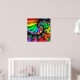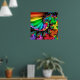 Este poster legal apresenta minha espiral de arte fractal "Arco-íris Melódico" com cores vermelhas, laranja, amarela, verde, azul, roxo, rosa e pretas.