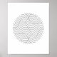 Esta arte geométrica em preto e branco ficaria maravilhosa em uma sala minimalista ou escandinava, estilizada. Este design apresenta um círculo cheio de um padrão hexágono preto e branco. Pareceria excelente como parte de uma parede de galeria.