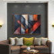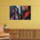 Arte geométrica abstrata com painéis verticais sobrepostos. Tons de azul ardósia, laranja ferrugem e cinza concreto criam um visual industrial sofisticado. Textura desgastada adiciona profundidade. Ideal para decoração moderna. Traga impacto visual e elegância crua para o seu espaço com esta peça exclusiva.