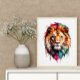 O rei da selva ganha vida neste retrato de cor d'água de arco-íris. Ainda que feroz, este trabalho de arte de leão irradia força, coragem, e beleza artística, fazer-o uma poderosa peça central para qualquer sala.