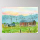 Pôster Arte Paisagem das Aves do Sol Vermelho Barn Waterc
