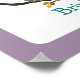Arte para berçário com ilustração de uma coruja roxa com barriga preta e branca em forma de chevron empoleirada em um galho com folhas laranja e marrom. A borda é roxa. Personalize com o nome.