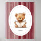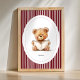 Esta ilustração de urso de pelúcia mostra um pequeno urso aconchegante lendo um livro, criando uma atmosfera calorosa e confortável que é perfeita para uma nursery ou quarto de criança. O estilo suave e desenhado à mão, combinado com o fundo listrado clássico, dá a esta obra de arte um visual atemporal e suave.