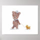 Cartaz fofo para o quarto ou berçário do seu menino. Ilustração em aquarela de um urso com um uniforme de marinheiro carregando um brinquedo de pato.