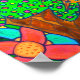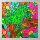 Decorem suas paredes em estilo com esta poster única e colorida de arte folclórica tirada de uma pintura acrílica original. Nesse trabalho de arte, brilhante sapo verde-esverdeado se coloca sobre um galho de árvores em uma floresta tropical entre flores e folhas tropicais, exibindo suas únicas manchas multicoloridas.