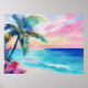 Poster Arte Sunset Do Oceano Tropical, Árvore De Palma