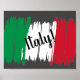 Poster impressão apresenta versão de pincelada artística da bandeira da Itália com sobreposição de texto personalizável sobre fundo preto.