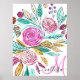 Poster Artsy Elegant Pink Teal Floral Watercolor Monogram