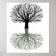 Um gráfico ousado de uma silhueta de árvore, é a imagem espelhada abaixo dela em um verde macio.