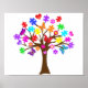 Linda e única árvore autista com quebra-cabeça autistas, borboletas e corações para apoiar a consciência autista.