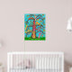 A Árvore da Vida, uma árvore com muitos ramos, é um tema recorrente arquetípico em muitas culturas mundiais, sinalizando a interconectividade de toda a vida em nosso planeta. Ela aparece na trabalho de arte, teologia, filosofia e mitologia em todo o mundo. Esta versão colorida apresenta folhas coloridas, padrões brancos de latido e inúmeros gatos multicoloridos em ação, cada um coberto com marcas coloridas únicas que lembram as encontradas em talhas pintadas de animais de Oaxacan.